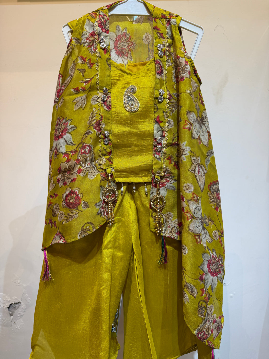 Mustard yellow mango patch palazzo set with flowy shrug