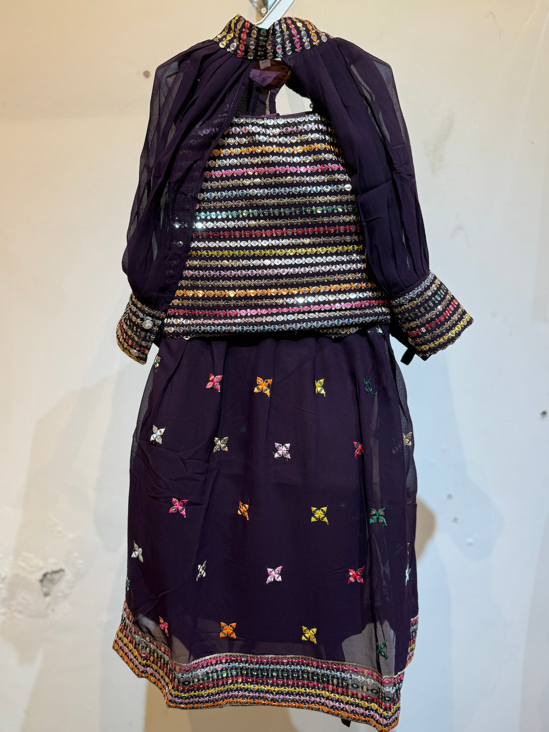 Bright wine full foil sequence work poncho choli with pocket in hip