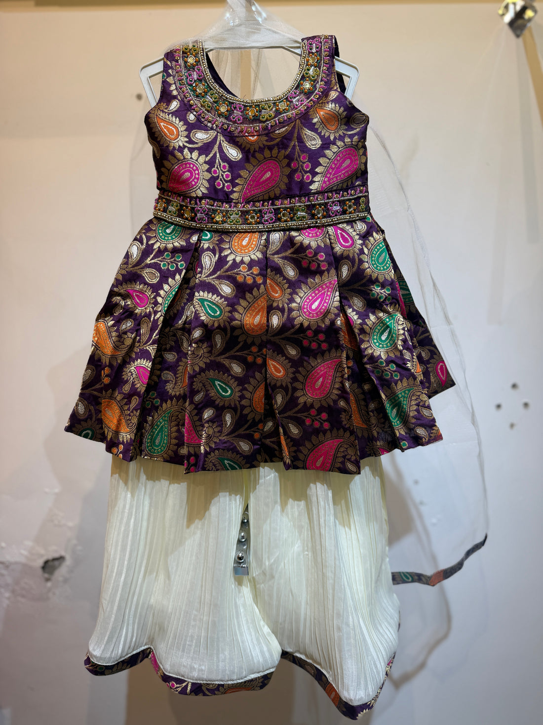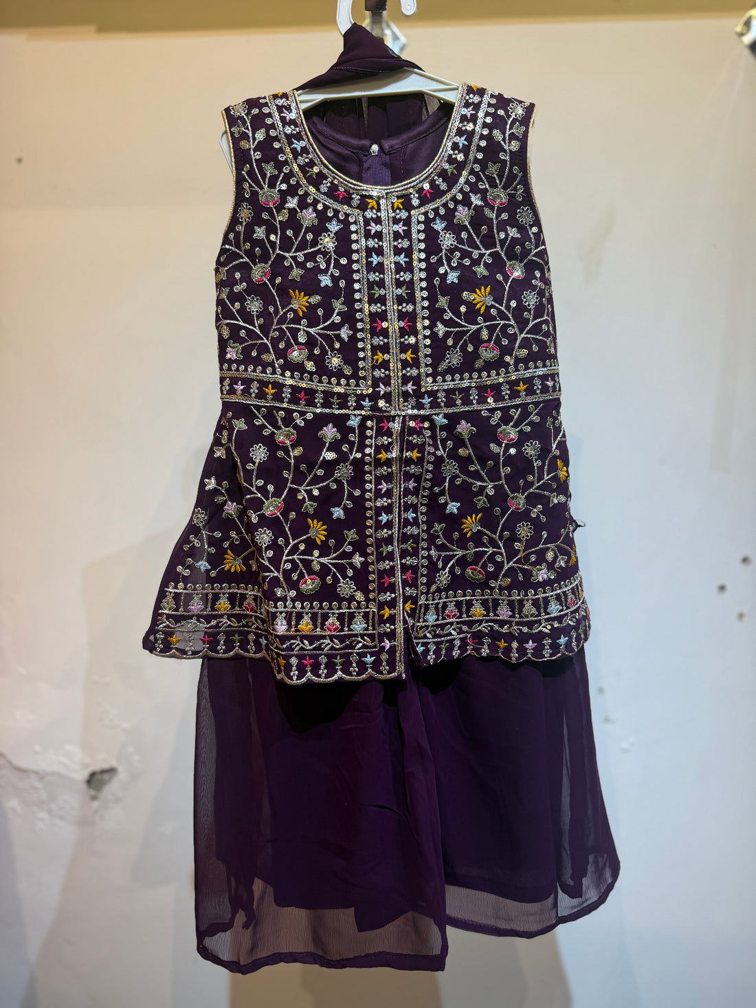 Front slit full work wine sharara
