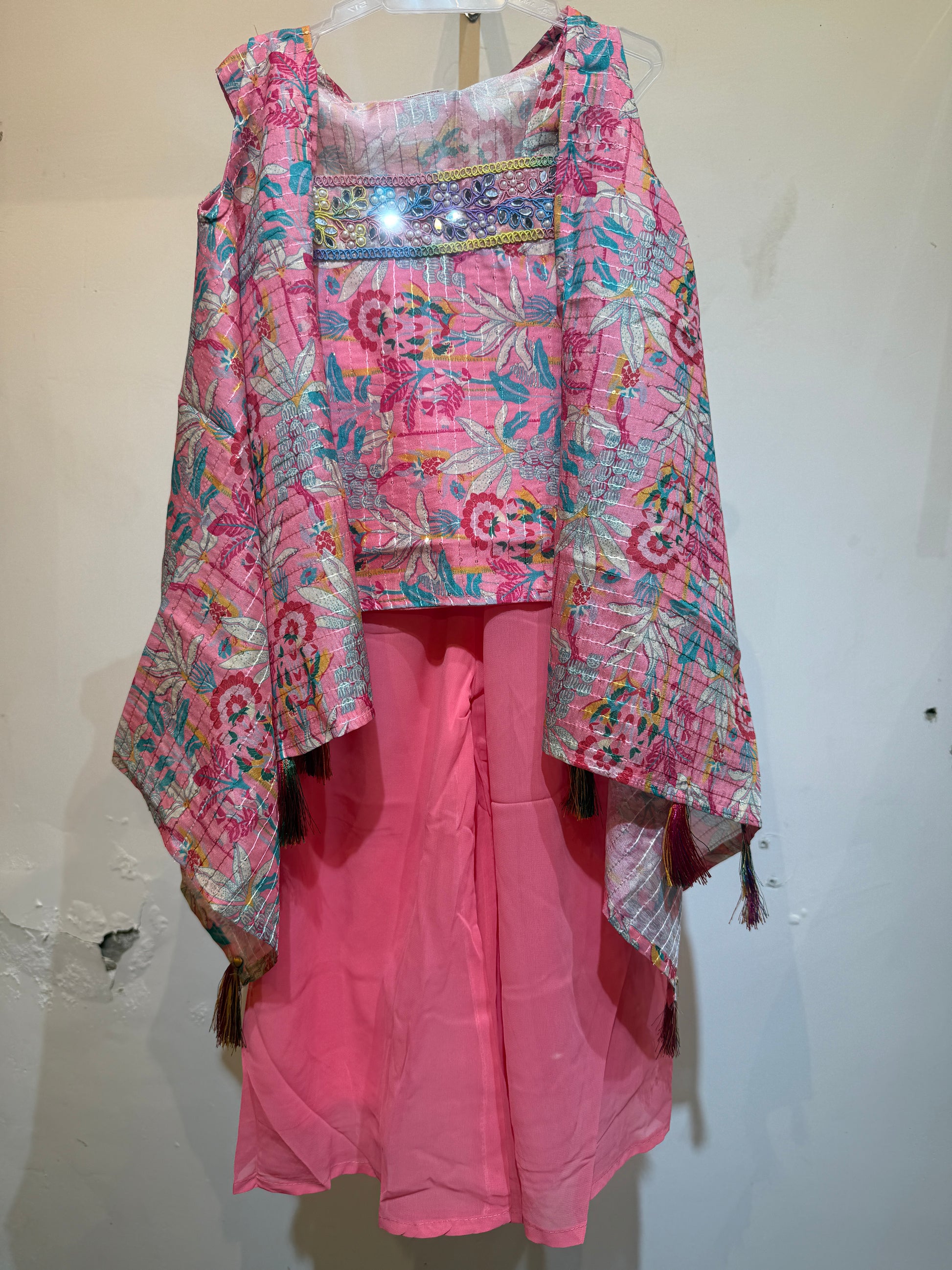 Bubblegum Pink tropical sharara with shrug