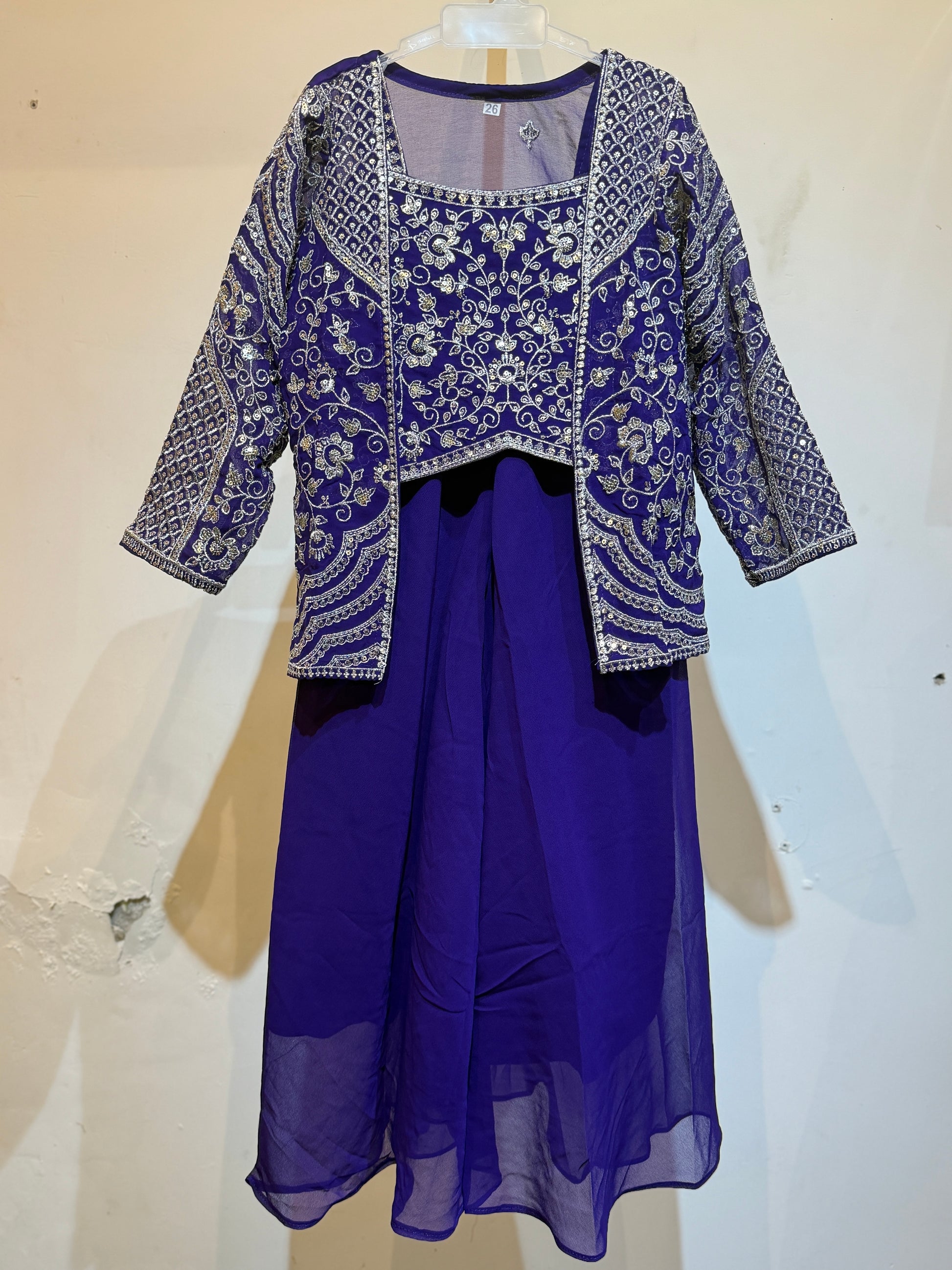 | It is a festive look, perfect for weddings, Diwali, or other special occasions,the beautifully designed jacket, adorned with vibrant embroidery set. |