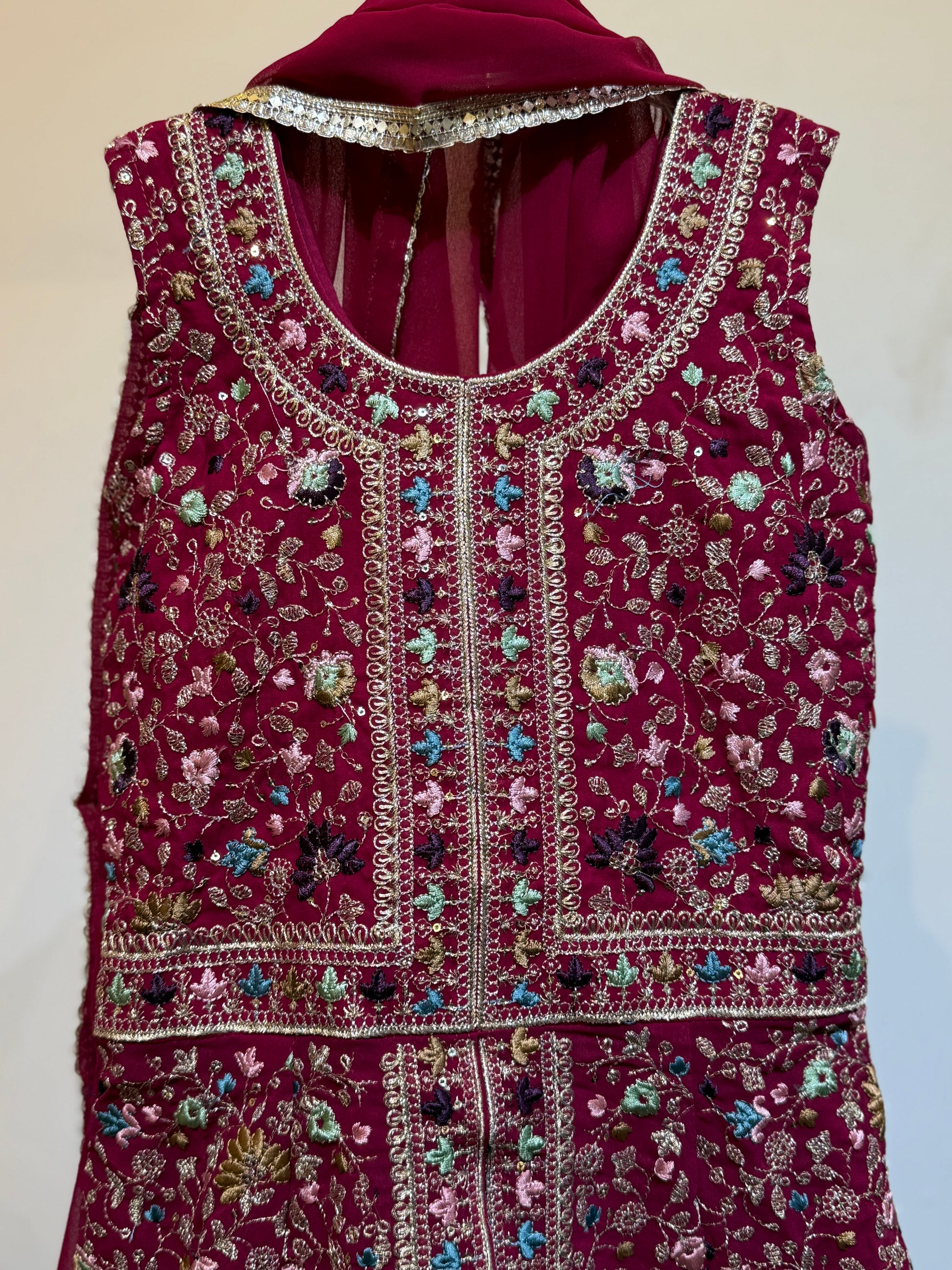 | It is a festive look, perfect for weddings, Diwali, or other special occasions,the beautifully designed jacket, adorned with vibrant embroidery set. |