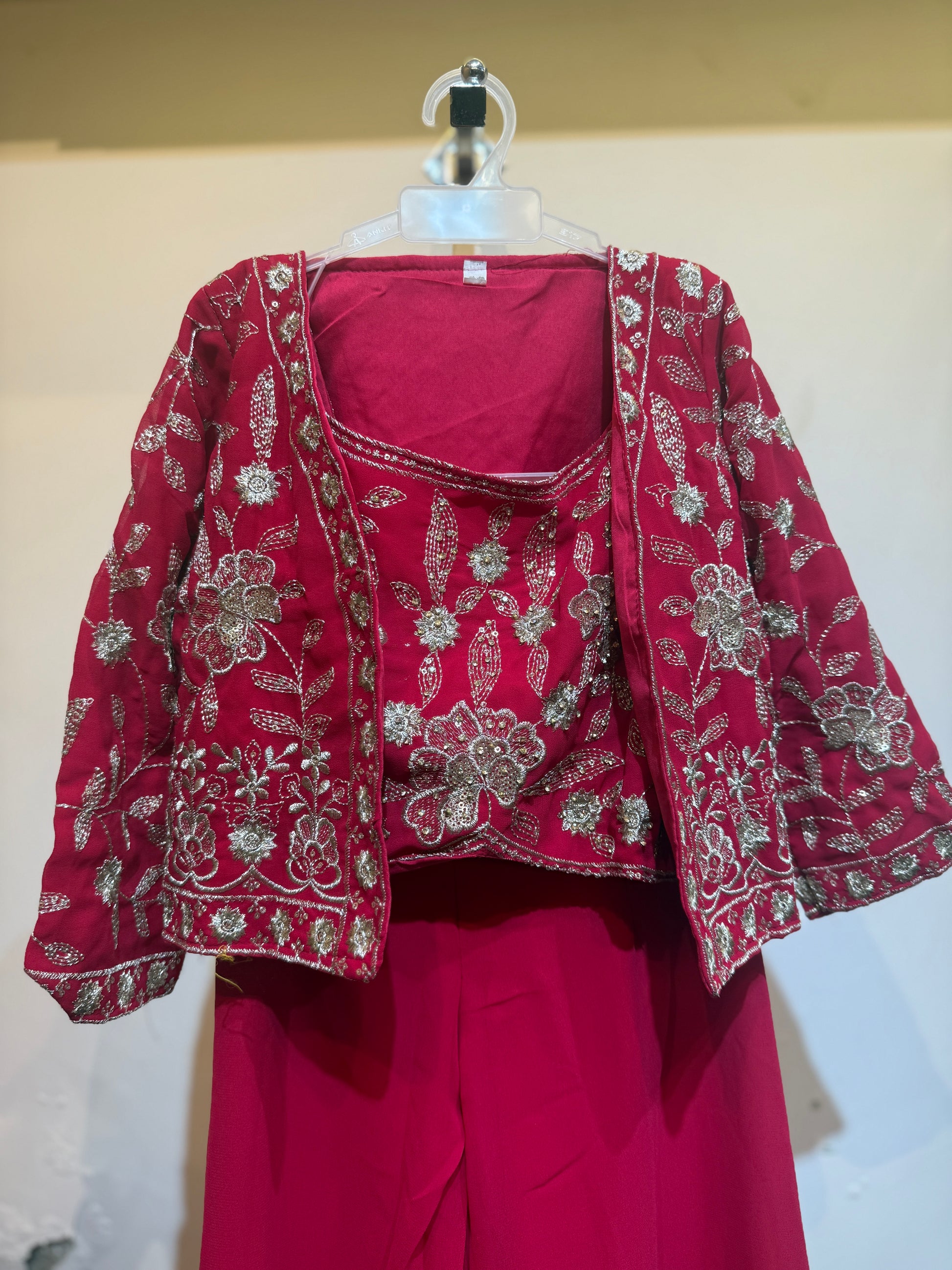 Pinky crop top with jacket palazzo set